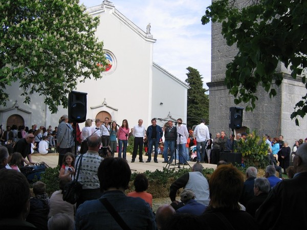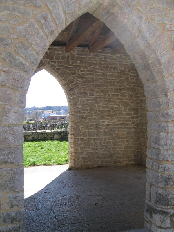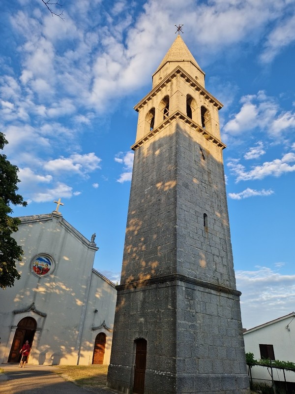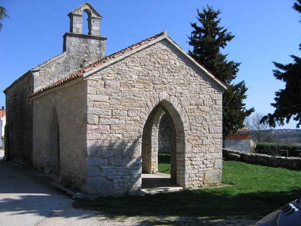 The 14th-century Church of St. Catherine, located at the village entrance, features Gothic frescoes, including The Living Cross from 1409. The Church of St. Sebastian, built in 1559 has a bilingual Latin and Glagolitic inscription on its façade. Nearby, the small Romanesque Church of St. Martin, holds a Glagolitic epitaph from 1588.