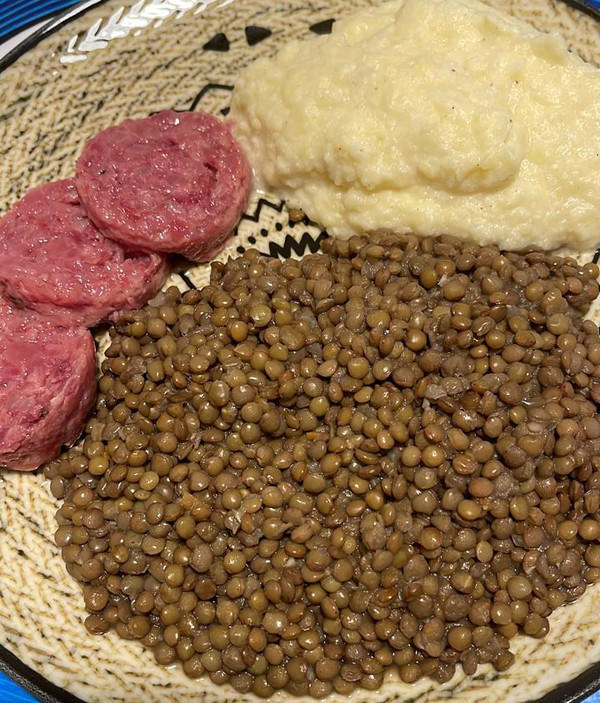 조리 방법: 필요한 경우 렌틸콩을 물에 불려놓는다. 양파, 당근, 셀러리를 부드럽게 볶는다. 렌틸콩과 월계수 잎을 넣고 육수를 부어 약불에서 25~40분 정도 끓인다. 물이 부족하면 육수를 추가하면서 렌틸콩이 부드럽지만 무르지 않게 익힌다. 소금과 후추로 간을 맞추고 엑스트라버진 올리브오일을 뿌려 완성한다. 새해의 상징적 의미를 담은 간단하면서도 풍미 가득한 전통 렌틸콩 요리는 새해를 따뜻하게 맞이하기 위함이다.