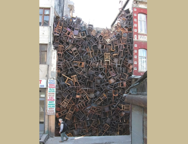 [아츠앤컬쳐] 도리스 살세도(Doris Salcedo1958~)가 2003년 이스탄불 비엔날레에서 선보인 〈무제(Untitled)〉는 1,600개의 의자를 두 건물 사이에 차곡차곡 쌓아 올린 대규모 설치 작품이다. 이 작품은 단순한 가구로서의 의자가 아닌, 집단 폭력의 희생자들을 기리는 매개체로 활용되었다. 그것은 폭력과 상실의 흔적, 그리고 사라져간 이들의 부재를 증언하는 침묵의 언어였다.