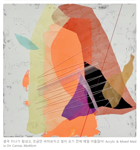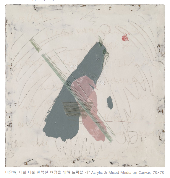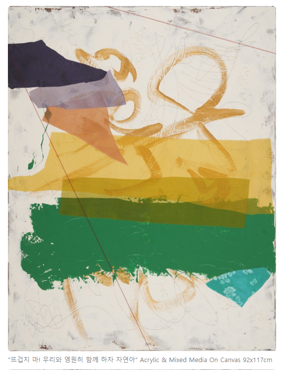 <...작품을 발표하는 것은 감상자와 호흡을 공유하는 행위이다. 전시장에서의 호흡뿐만 아니라 다양하게 인터뷰하는 사람들과의 소통은 고리가 깊은 의미 있는 상호작용으로 연결된다. 언어라는 수단으로 대화를 나누지만 그 기저에는 감각기관을 사용하여 보이지 않는 에너지를 전달하고, 자연의 바람을 일으켜 교감(交感)하는 것이다.