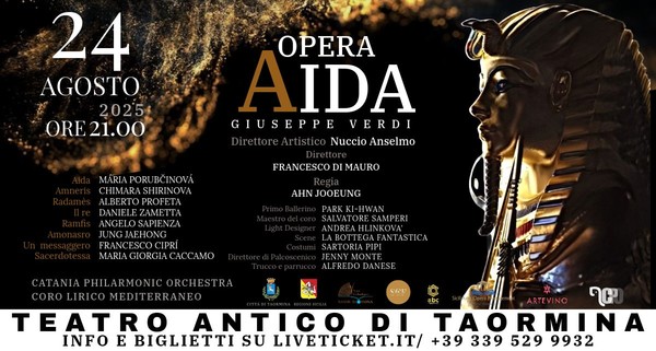 [아츠앤컬쳐] 이탈리아 현지 시각으로 8월 24일 밤 9시 이탈리아 시칠리아의 타오르미나 고대 그리스 극장(Teatro Antico di Taormina)에서 한국의 오페라 연출가 안주은 감독이 총연출을 맡은 베르디의 걸작 오페라 <아이다> 공연이 열린다.