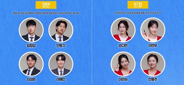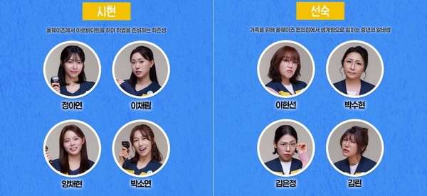 출연진은 독고役에 문대한 송명강 김송주 이준호 배우, 염영숙役에 이새롬 고은비 김고울 유채빈 배우, 시현役에 정아연 이채림 양채현 박소연 배우, 오선숙役에 이현선 박수현 김은정 김린 배우, 경만役에 임창섭 안동기 지성준 이예인 배우, 인경役 손다연 이연우 이민하 안홍주 배우가 깊이 있는 감정선으로 입체적 인물을 완성하고 있다.