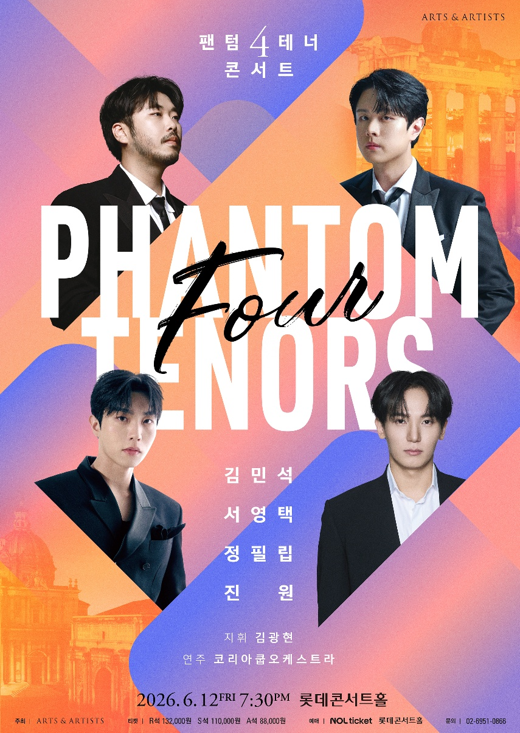 오는 6월 12일 롯데콘서트홀에서 열리는 ‘팬텀 포 테너스’는 김민석, 서영택, 정필립, 진원이 한 무대에 올라 테너라는 목소리의 본질과 클래식 성악의 정수를 선보이는 공연이다.