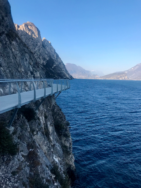 그런 리모네 마을이 이 가르다 호수 위 산책길 건설로 여행객들 사이에 다시 회자되고 있는 것이다. 좀 더 정확히 말하자면 관광 프로젝트의 일환으로 리모네 마을이 끝나는 시점에서 시작해 다음 마을로 이어지는 중간 지점까지 호수를 따라 새롭게 길을 만들어 호수와 더불어 산책을 즐길 수 있도록 해놓은 것이다. 특히 호수와 맞닿은 절벽을 따라 물 위에 2.5Km의 철제길을 만들어 가르다 호수의 아름다움을 바로 코앞에서 느낄 수 있게 한 특별한 아이디어가 돋보인다.