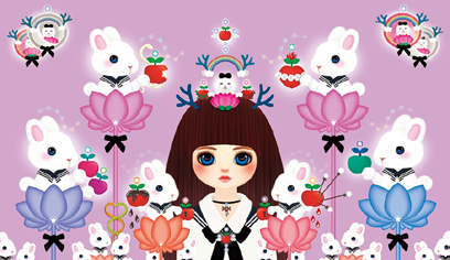 언뜻 그녀의 작품에서는 일본의 팝 아티스트 무라카미 다카시(Murakami Takashi)의 화려한 만화 색채 같은 작품이 연상된다. 루이뷔통과 콜라보레이션 했던 무라카미 다카시 작품의 이미지가 우리와 친숙하기 때문이다.